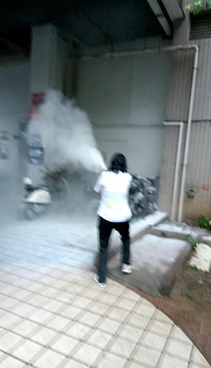 物业服务中心的卓丹在听到呼喊声后,第一时间提起灭火器飞奔过去。在其他业主的指引下,她看到商铺电表箱的火直往外冒,情况十分危急。卓丹没有丝毫犹豫,迅速拔掉灭火器保险栓,将喷嘴对着火苗方向猛喷。在她的果敢行动下,火苗慢慢熄灭。但为了确保安全,卓丹又用一瓶灭火器对着电表箱继续猛喷,直到彻底没有烟才停止。
